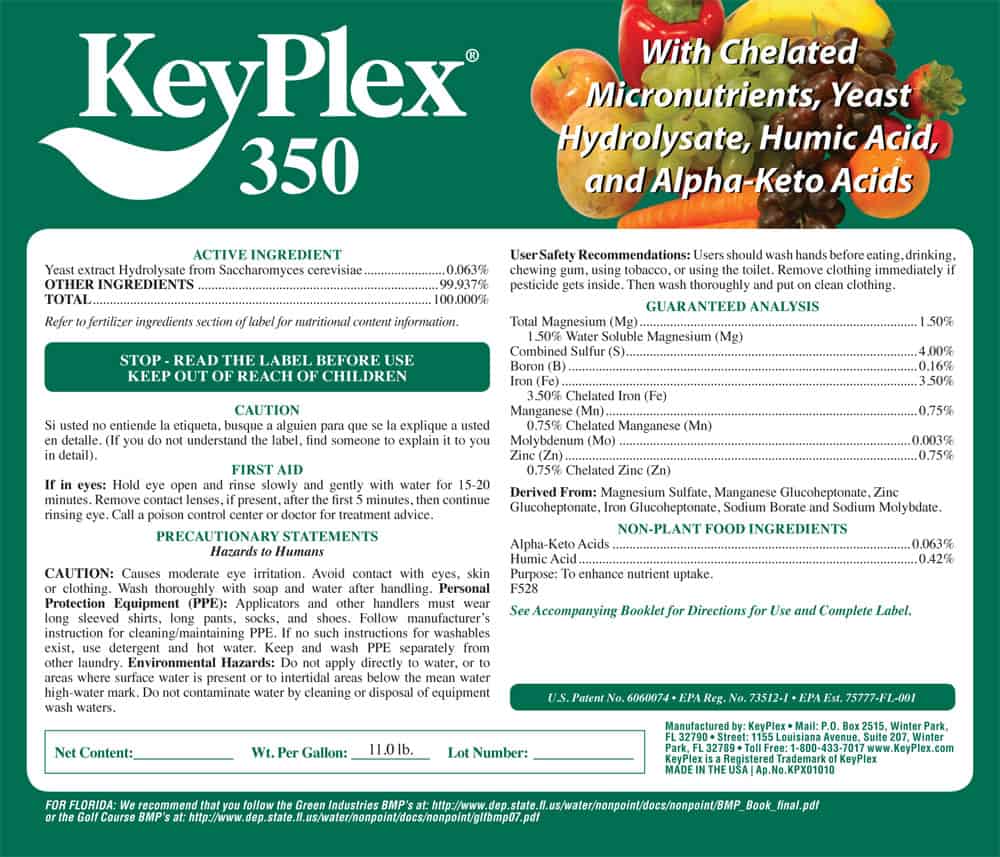 *KeyPlex 350, EPA Reg. # 73512-1; KeyPlex 350 OR, EPA Reg. # 73512-4, EPA registered bio-pesticide; Yeast Hydrolysate, EPA Reg. # 73512-2