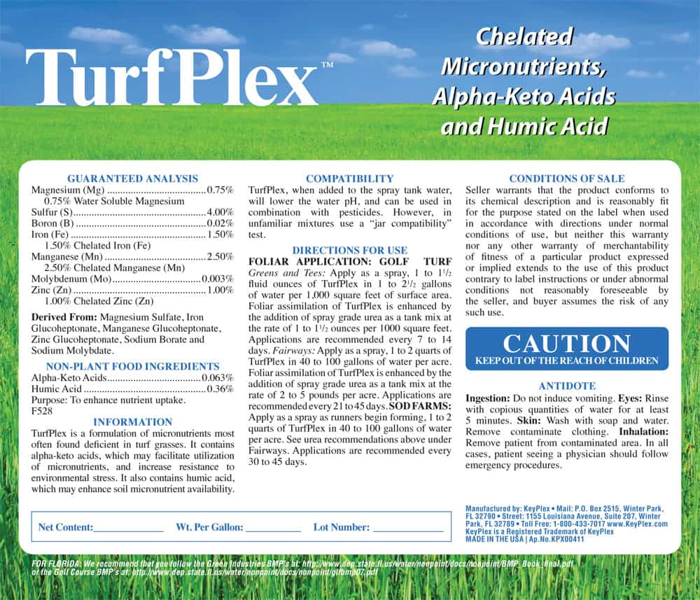 Other Products to Consider: KeyPlex Cal- Mag- Boron use as needed to correct deficiencies, KeyPlex Blossom (flowering ornamentals, Azaleas, Camellias, Gardenias, etc) Jumpstart for overseeding, sodding or sprigging.